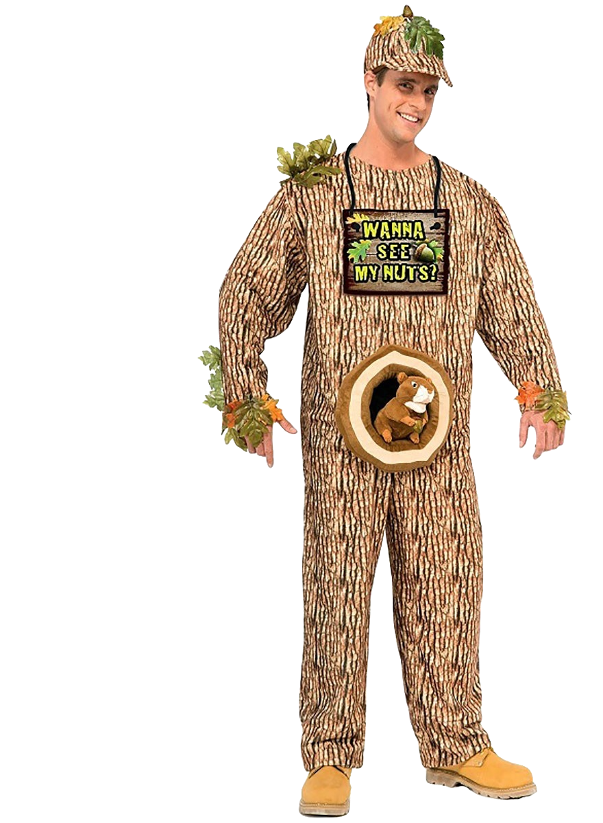 It’s a tree costume with a cute squirrel popping out from the groin area. Are we noticing a trend here with punny dick jokes?