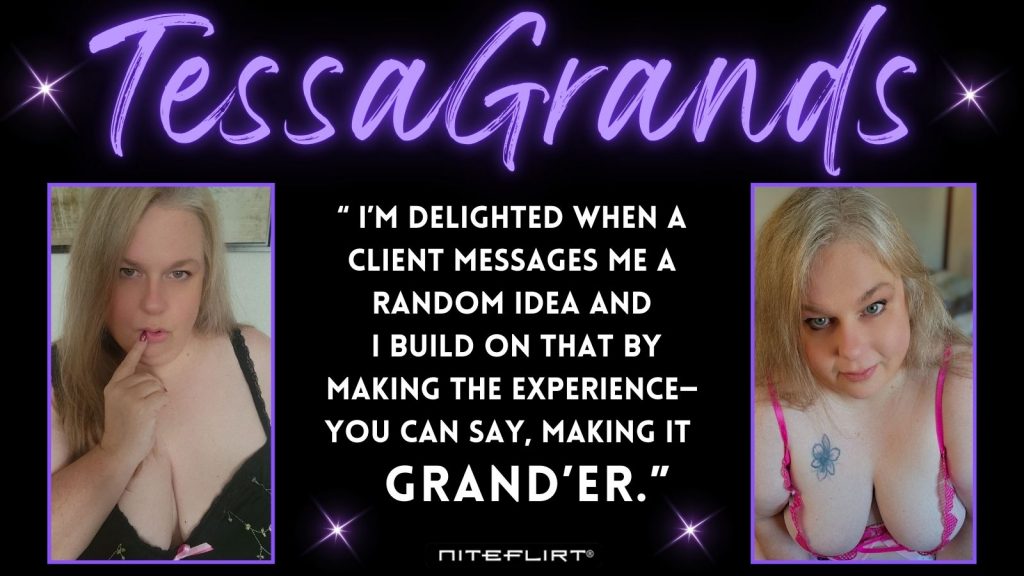 From her earliest days on NiteFlirt, TessaGrands has thrived on real connection. She isn’t interested in one-sided fantasies or going through the motions. She’s attentive, intuitive, and deeply present with each caller. Her sessions aren’t rushed—they’re a slow build, tailored to your unique desires and boundaries.