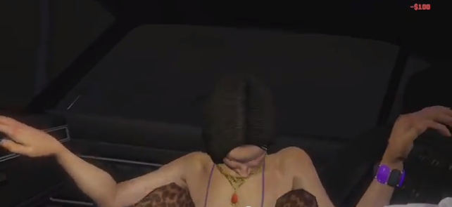 In the video Rockstar made (below), the driver picks up a prostitute and takes her into a dark alley. Then she asks, “What are you craving baby?” and proceeds to suck his cock. She says things like, “Oh shit. I love the taste of pre-cum” while slurping on his dick and moaning, “I want to swallow all of your cum.” Then they fuck. She climbs on top and says things like, “I’m so wet for you”; “you like my titties in your face while I’m riding you?”; “my clit is throbbing for you right now.” And the first-person POV definitely makes you feel like you’re in an interactive porn.