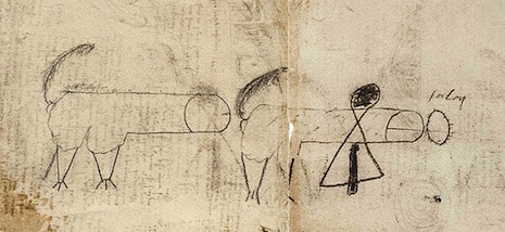 A pornographic doodle was recently discovered in one of Leonardo da Vinci’s many notebooks. The famous painter’s lesser known sketch is of two cocks with legs and tails walking toward what appears to be a crudely drawn ass-hole! Historians believe the drawing was most likely done by Leonardo’s mischievous apprentice and lover, Salai. In fact, the anus is literally titled “Salai.” Cheeky!