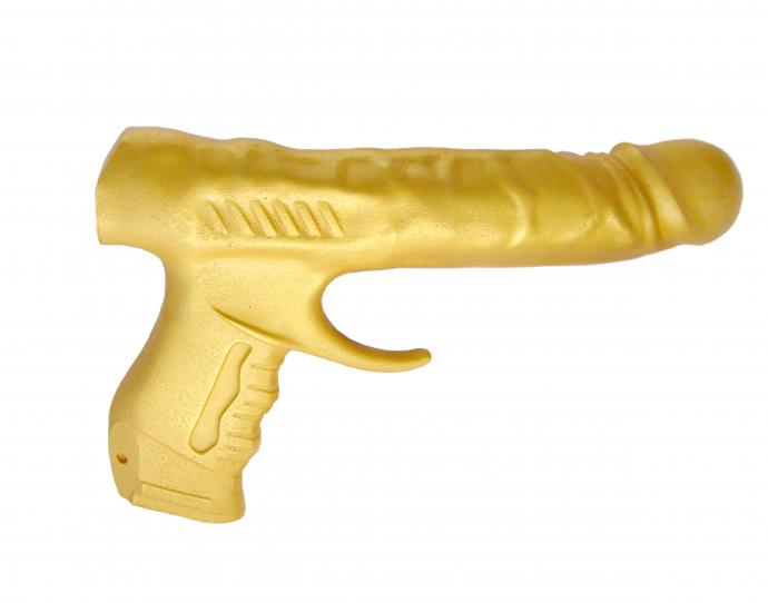 sideview001The Nikita is a gun-shaped dildo that, as its designer says, “shoots orgasms.” It’s a six-inch silicone sex toy with a vibrating sleeve that started as an art project and became a fully functioning dildo (and conversation piece!). While the dildo’s gun-shape may not be for everyone, the artist who created the Nikita is hoping to inspire people to explore their sexuality while engaging with the toy and its subject matter—both serious and playful—at the same time.