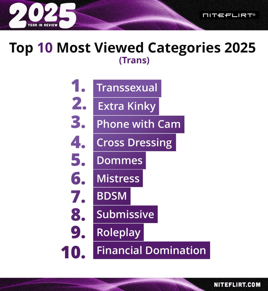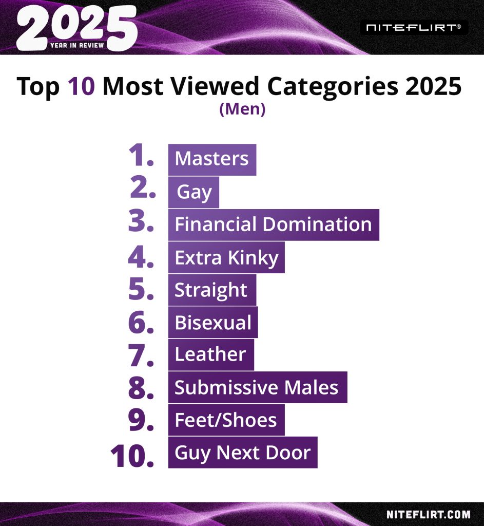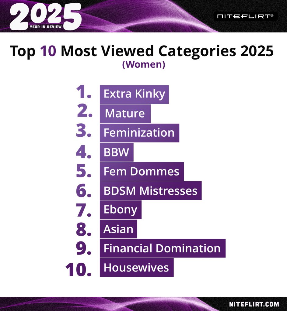 In 2025, kink-play and domination-focused categories remained among the most viewed across Women, Men, and Trans listings. What stood out was how often those interests intersected with the comfort-driven shift of the year.